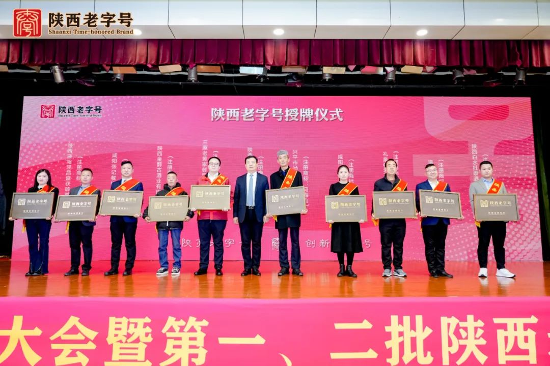 会上,陕西省商务厅副厅长郭绍敏宣读了陕西老字号认定名单,陕西省商务厅、陕西省知识产权局、陕西省档案馆、陕西省文旅厅非遗处、陕西省市场监管局质量发展局、陕西省文物局文物保护与考古处等6部门为第一、二批认定的101家企业颁发了“陕西老字号”牌匾。